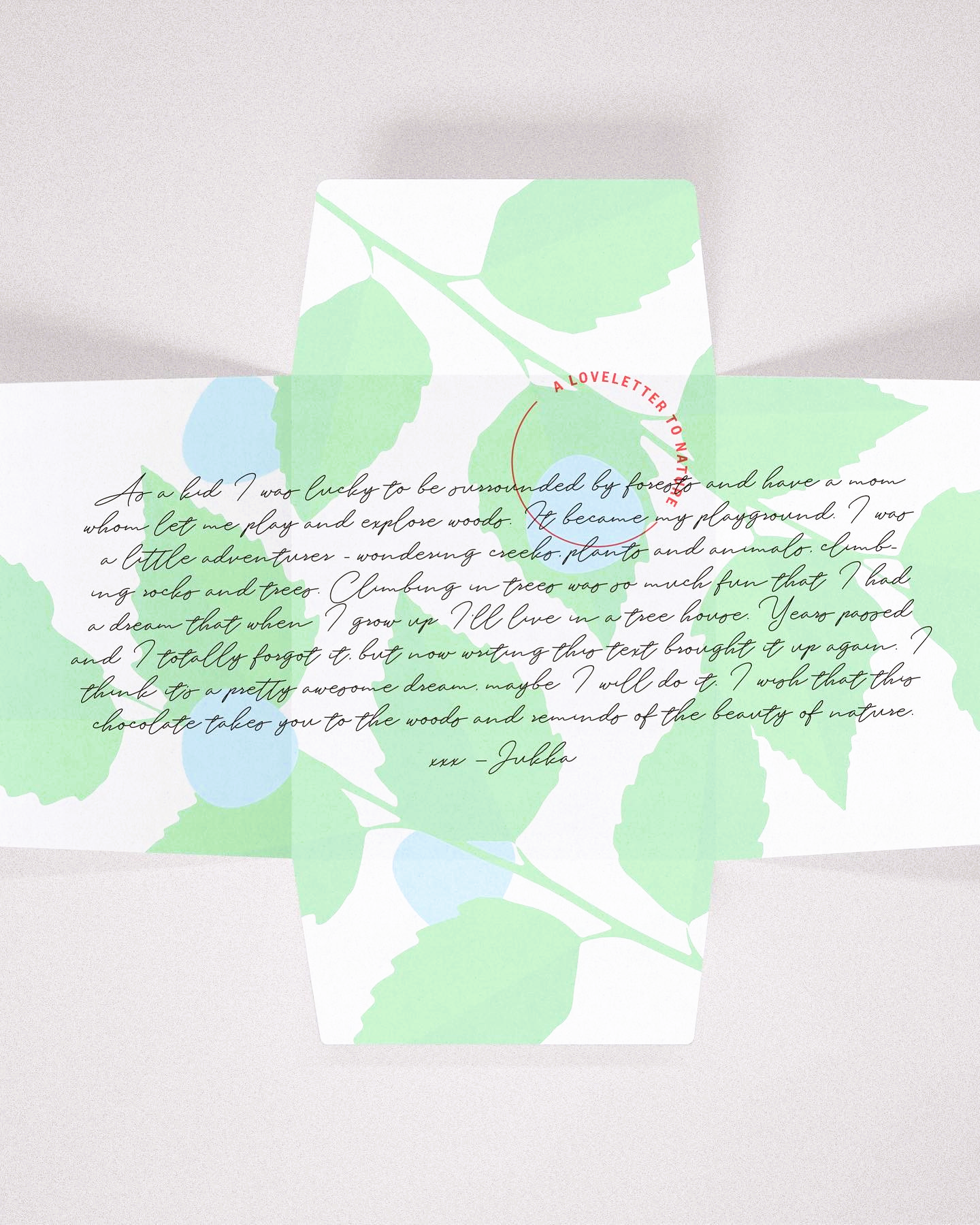 Handmade in Finland: Vegan chocolate with forest crystals, spruce shoot powder, and birch leaves.