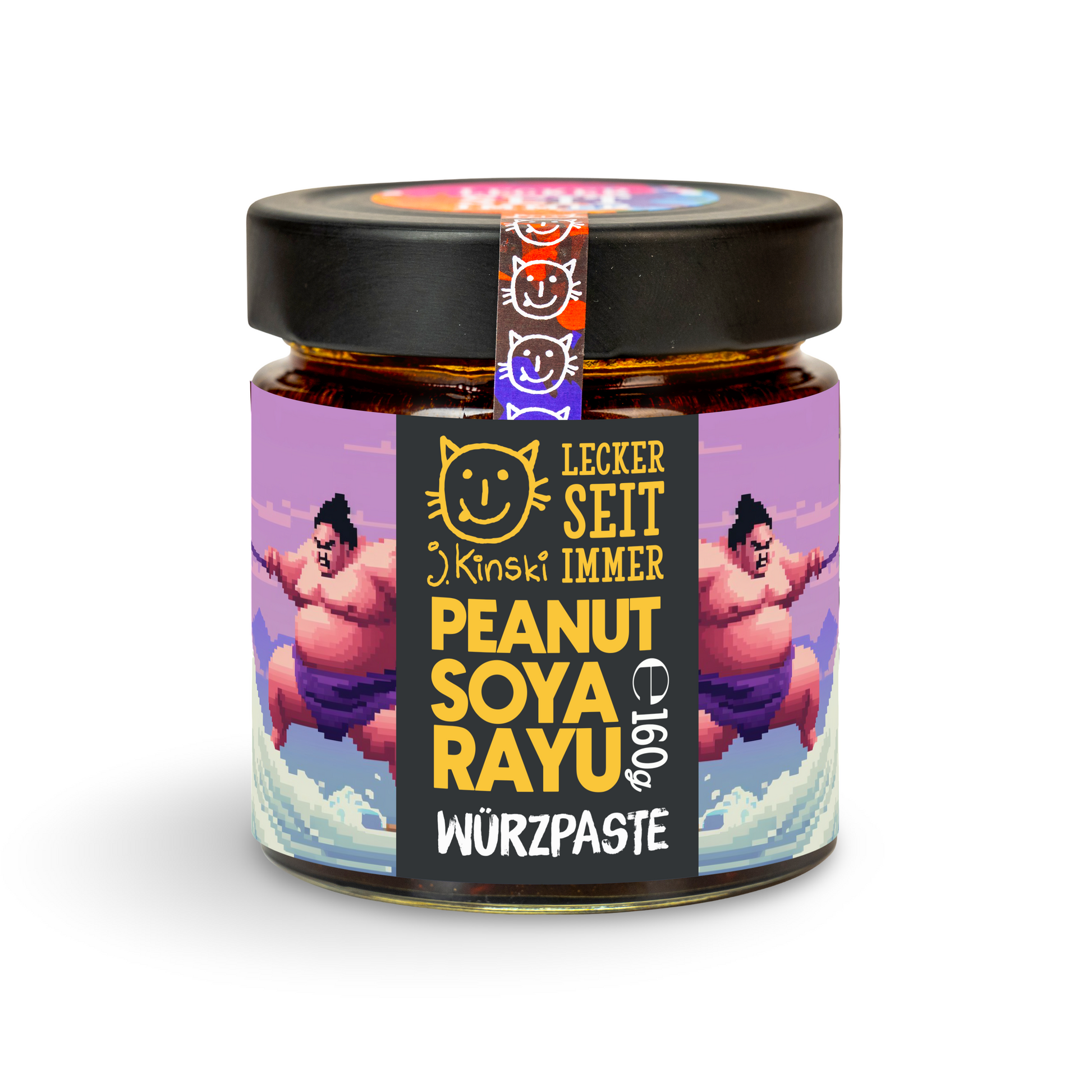 Die Peanut Soya Rayu ist J.Kinskis Interpretation des klassischen Rayu-Gewürzöls – mit einem entscheidenden Twist: Hier bleibt das gute Zeug drin! Knusprige Stückchen von Sesam, Erdnuss, fermentierter Sojabohne und würzigen Algen sorgen für Textur und Umami pur. Die Basis aus feinem Rapsöl trägt das Aroma sanft auf jedes Gericht.