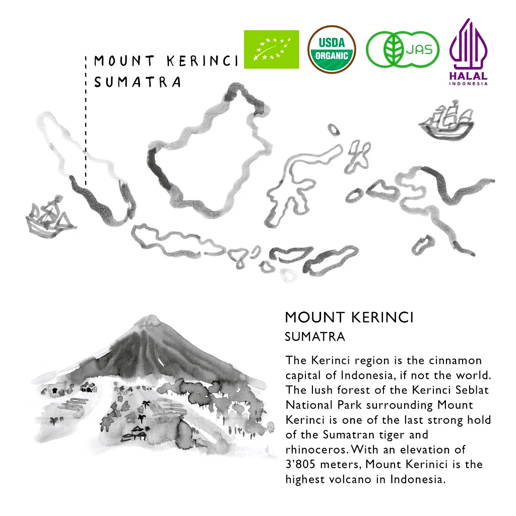 Unsere Bio Zimtstangen werden nachhaltig in der Nähe des Mount Kerinci auf Sumatra angebaut.