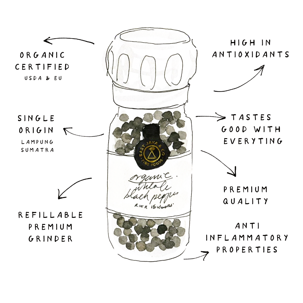 Bio Schwarzer Pfeffer in der Mühle - Sumatra Indonesien - 46g